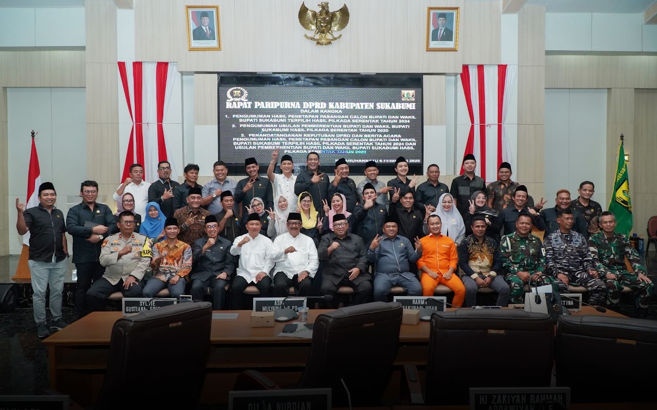 Caption : Foto bersama pasca rapat paripurna DPRD Kabupaten Sukabumi