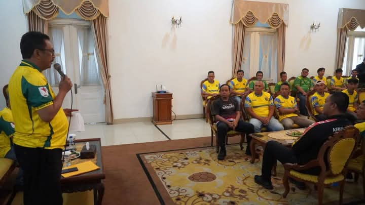 SUKABUMI,- Bupati Sukabumi H. Asep Japar melepas tim sepakbola Persikabumi untuk mengikuti kompetisi liga 4 putaran nasional 2024/2025 di Jember, Jawa Timur. Prosesi pelepasan dilaksanakan di Pendopo Sukabumi, Minggu, 20 April 2025.