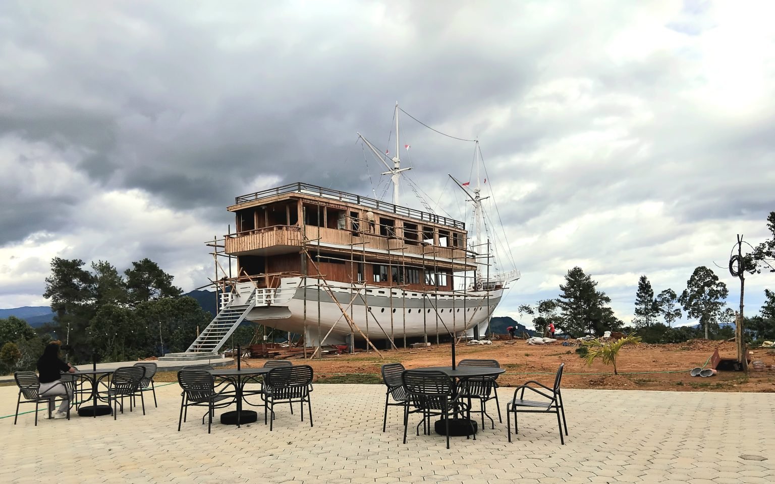 Bangunan berbentuk kapal tersebut nantinya difungsikan sebagai penginapan sekaligus restoran, serta menjadi spot foto dan lokasi prewedding. Letaknya yang berada di puncak bukit dengan latar panorama alam ketinggian 1.500 MDPL membuatnya memiliki nilai visual yang kuat.
