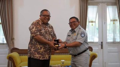Caption Bupati Sukabumi H Marwab Hamami bersama Kepala Perwakilan PT. Jasa Raharja Wahyu Pria Wibowo…