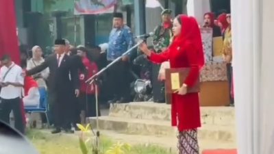Caption ilustrawi ; Sylvie Gustiana Derin Jadi Pembaca Teks Proklamasi Upacara HUT RI Di Cibadak…