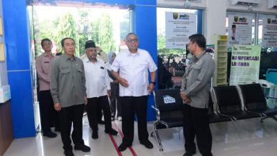Bupati Sukabumi H Marwan Hamami didampingi Sekda Ade Suryaman, di Kantor DPMPTSP Kab.Sukabumi, SUKABUMI.-Dinas Penanaman…
