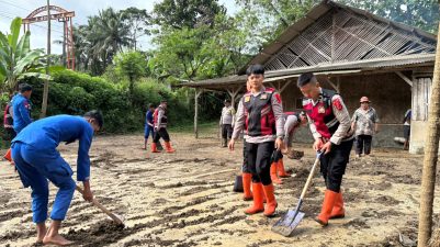 Respon Cepat Sat Samapta Polres Sukabumi Bersihkan Material Banjir dan Longsor di Nyalindung Nyalindung, transmetro.id,…