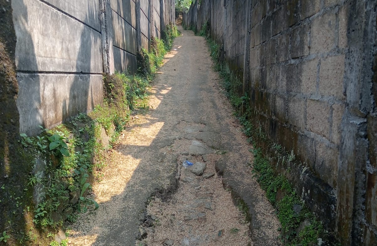 Jalan ini belum pernah tersentuh pengaspalan/ betonisasi yang di perkirakan volume panjang jalan 500 Meter.